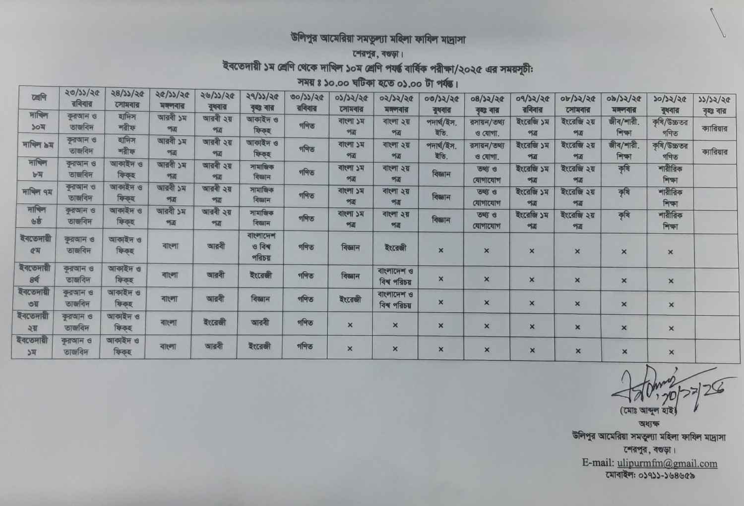 মাদ্রাসার বার্ষিক পরীক্ষার রুটিন ২০২৫
